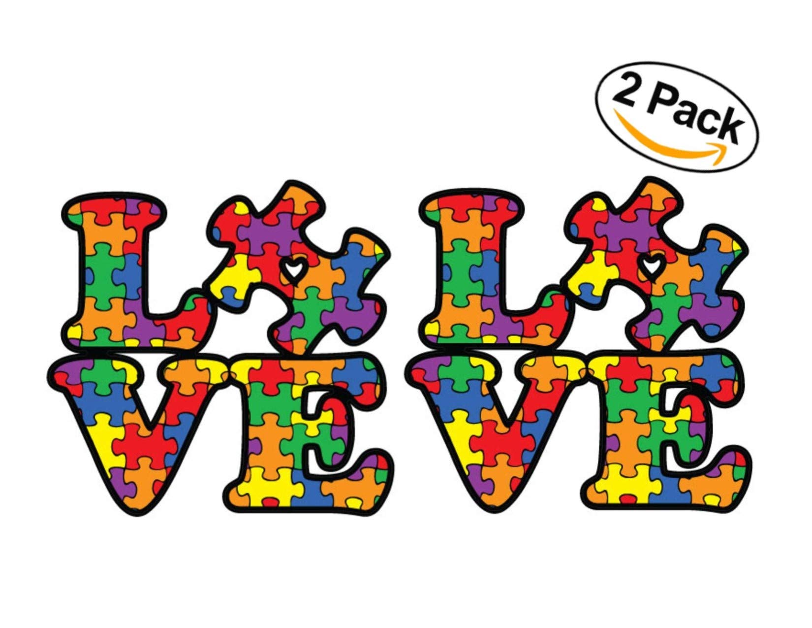 Details: eDesign 2-Pack Autism Awareness Love Puzzle Piece Decal Sticker Premium Quality Vinyl Size 5-Inches for Car Bumper Truck Van SUV Window Wall Cup Tumblers Laptop