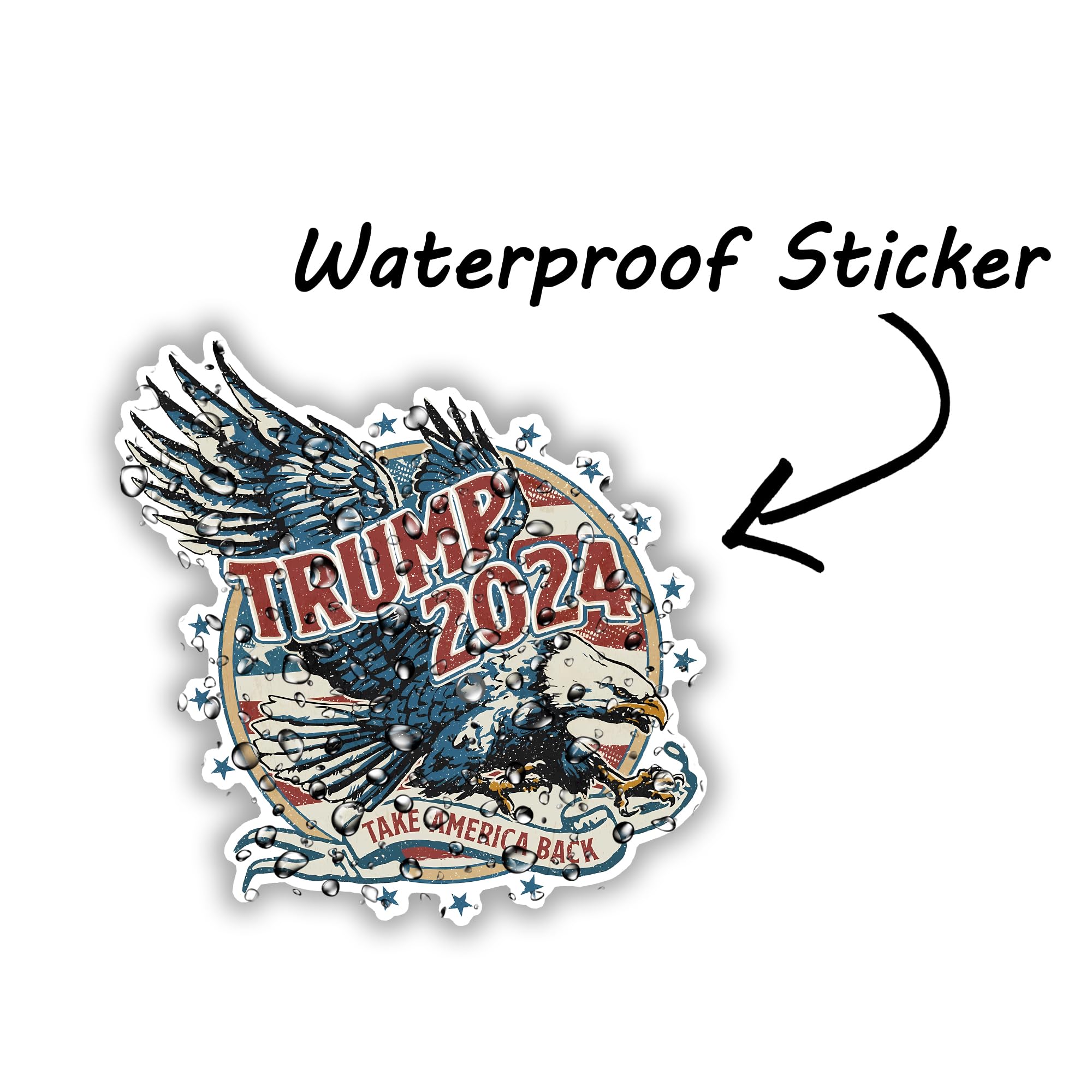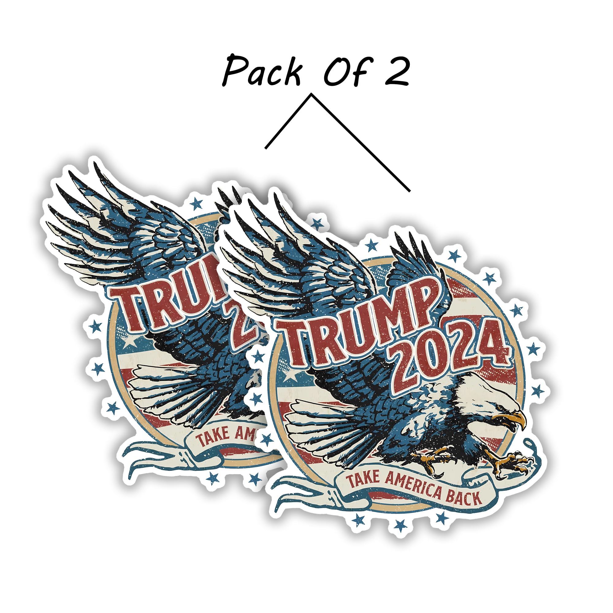 - Patriotic Design: Features a majestic eagle with the American flag backdrop and “Trump 2024” in bold lettering, showcasing your support in a visually striking manner.